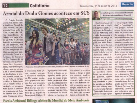 A Fundação de Rotarianos de São Caetano do Sul, juntamente com o Colégio Eduardo Gomes realizará no dia 25 de junho, o Arraial do Dudu Gomes, nas dependências do colégio.