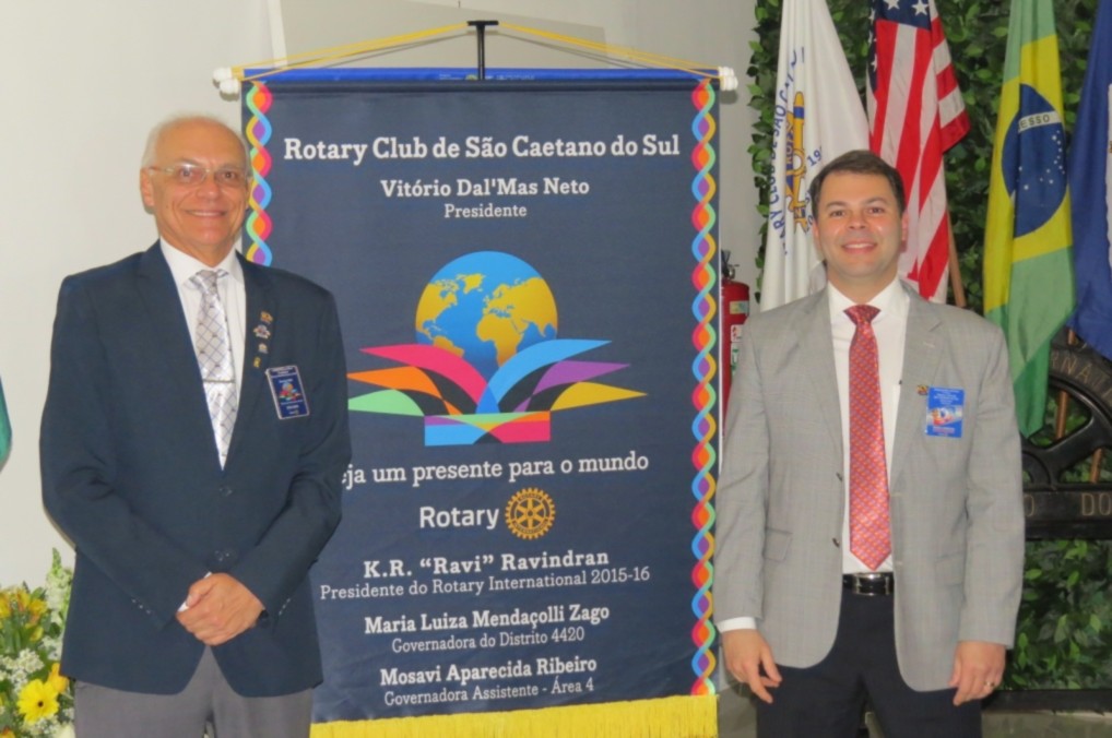 Em concorrida reunião festiva de transmissão de cargo, realizada no Bufett Toca, na noite de 08 de agosto de 2016, o Presidente Presente do Rotary Club de São Caetano do Sul, ano rotário 2015-2016, Vitório Dal?Mas Neto entregou a batuta para o companheiro Alessandro Arnoni, para dirigir o clube no ano rotário 2016-2017. Mais de 120 pessoas prestigiaram o evento, que contou com a presença do Governador do Distrito 4420 do Rotary International, Ronaldo Varella e sua esposa Monica. Na Oportunidade, o Rotary Kids de São Caetano do Sul também realizou o cerimonial de transmissão do cargo de presidente, coma jovem Isadora Riera Lima entregando o cargo para Heloisa Andrietti Ferreira. Uma tradição que se mantém há 54 anos foi concretizada com a entrega do Tijolo da Construção, onde o presidente que está deixando o cargo entrega o tijolo para o presidente que está assumindo e que deverá cuidar desse tijolo até o próximo ano. O tijolo, simbolicamente, remonta à 1.962, quando o então presidente do Rotary Club de São Caetano do Sul, José Oscar da Silva Botas transmitiu o cargo para João de Conti, entregou o tijolo, que representa o início da construção da Casa da Amizade de São Caetano do Sul. Por fim, foi descerrado o pano que cobria a foto oficial do 65º presidente do Rotary Club de São Caetano do Sul, Vitório Dal?Mas Neto, que fará parte da galeria de fotos do Clube.