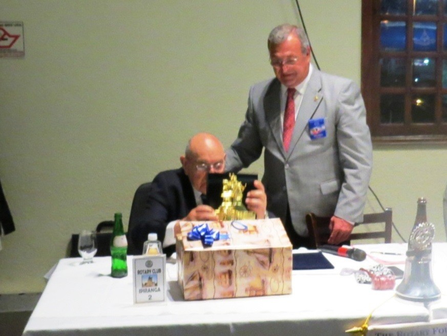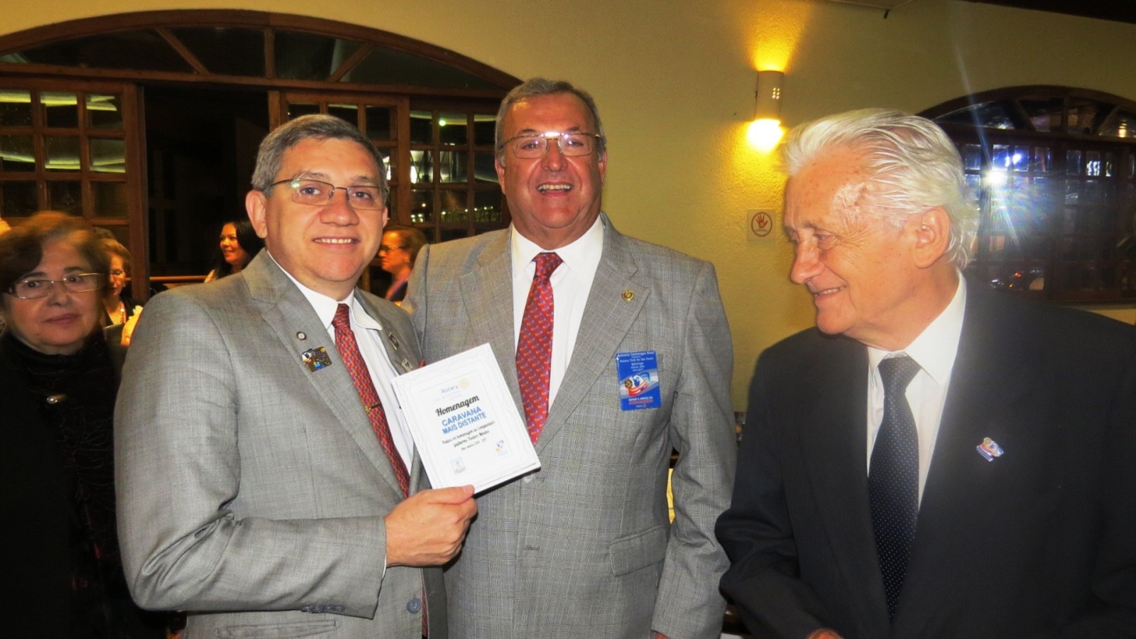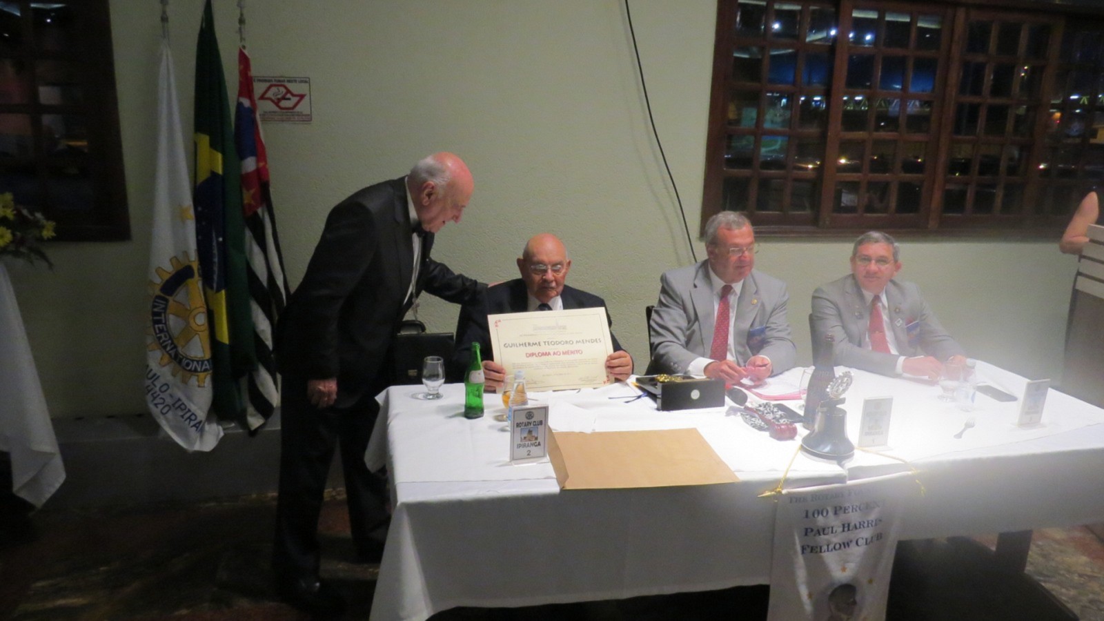 Salve 12 de maio de 1959. Já se passaram 58 anos que o Rotary Club de São Paulo Ipiranga, um ícone no Distrito 4420, foi fundado, mentor de inúmeros projetos que beneficiaram muitas pessoas, homenageia outro ícone em nosso Distrito : o companheiro GUILHERME TEODORO MENDES. Essa ilustre e simpática pessoa, atuante, autêntico ROTARIANO, com letras maiúsculas, recebeu no dia 10 de abril uma merecida homenagem dos companheiros de seu clube, o Ipiranga e com o apoio dos clubes Anchieta, Independência, Vila Carioca, Vila Mariana, Saúde e Paraíso. O Rotary Club de São Caetano do Sul, fez questão de transferir sua reunião para junto dos rotarianos do Ipiranga, para prestar merecida ao companheiro GUILHERME TEODORO MENDES. Foi lembrado que, no ano rotário 1959-1960 nosso presidente Anton Wilhelmsen participou da fundação do Rotary Club de São Paulo Ipiranga e desde aquele tempo, um forte laço de amizade e respeito uniram esses dois clubes. Tanto que, no ano rotário 1966-1967, o presidente do Rotary Club de São Caetano do Sul, CARMINE WALTER BARILE e o presidente do Rotary Club de São Paulo IPIRANGA, iniciaram uma já centenária tradição de transferir a reunião de seus clubes, semestralmente, de um clube para outro. Acredita-se que, em termos de Rotary International, não exista algo igual no mundo, dois clubes se reunindo duas vezes ao ano. Parabéns aos companheiros rotarianos do Rotary Club de São Paulo IPIRANGA, pela passagem de seus 58 anos de fundação e pela brilhante iniciativa de prestarem essa justa e merecida homenagem ao grande rotariano, GUILHERME TEODORO MENDES.