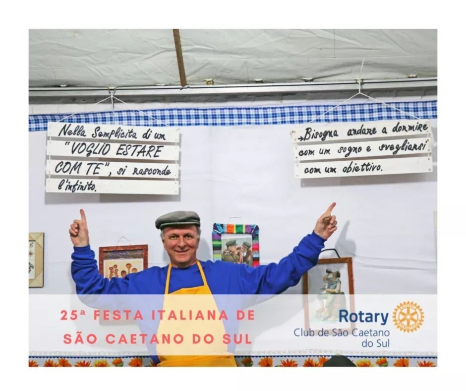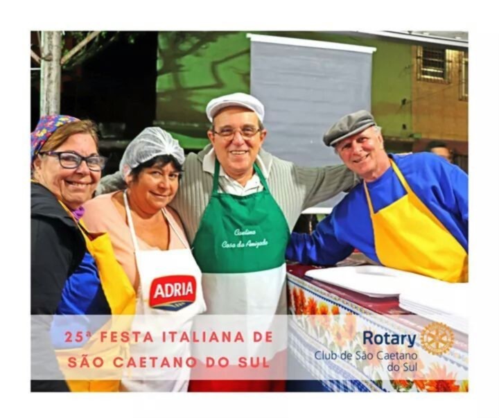A 25ª Festa Italiana de São Caetano do Sul, segunda maior festa de caráter gastronômico-italiano de rua do Estado de São Paulo já começou e os 4 Rotary Clubs da cidade ( RC SCS, RC SCS Oeste, RC SCS Leste e RC SCS Olímpico ) mantém e trabalham nas barracas da Fundação de Rotarianos do São Caetano do Sul e da Casa da Amizade de São Caetano do Sul. Em sua 25ª edição, promovida e coordenada pela prefeitura municipal de São Caetano do Sul, 23 entidades sociais da cidade apresentam seus projetos e fazem do resultado da festa uma fonte de recursos para seus projetos sociais. Os 4 Rotary Clubs de São Caetano do Sul, atuando nas barracas da Fundação de Rotarianos e Casa da Amizade, destinam o resultado financeiro para os principais projetos permanentes da própria Casa da Amizade. Na barraca, os rotarianos oferecem deliciosos pratos da culinária italiana, destacando-se antepastos napolitano e sardegno, massas ( fusile, nhoque, capeletti, raviolli recheado, conchiglione, porpeta e lanche de buraco quente. Para beber, disponibiliza, água, refrigerantes, cerveja, vinho e suco de uva, além dos doces canollo) e sfogliatella, deliciosas sobremesa. A Festa Italiana de São Caetano do Sul ocorre anualmente, em todos os finais de semana de agosto, sábados e domingos, a partir das 18 horas. Estão todos os rotarianos, familiares e amigos, convidados a conhecer nossa festa