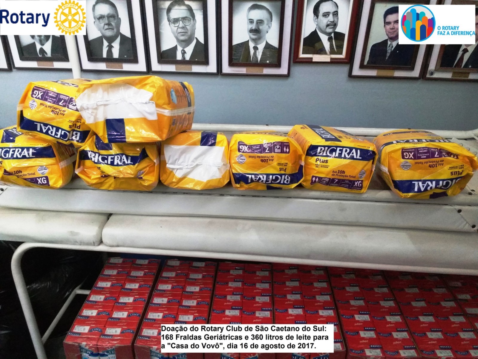 A Casa do Vovô, mantida pelo Grupo Luz, de São Caetano do Sul, recebeu em doação do ROTARY CLUB DE SÃO CAETANO DO SUL, 30 dúzias de caixinhas de 1 litro de leite integral e 168 fraldas geriátricas descartáveis. Essa doação, que em muito vai colaborar com os 27 idosos abrigados na Casa do Vovô, foi projeto do clube iniciado na gestão humanitária do presidente Alessandro Arnoni e entregue pelo presidente que Faz a Diferença, Jorge Ishi.