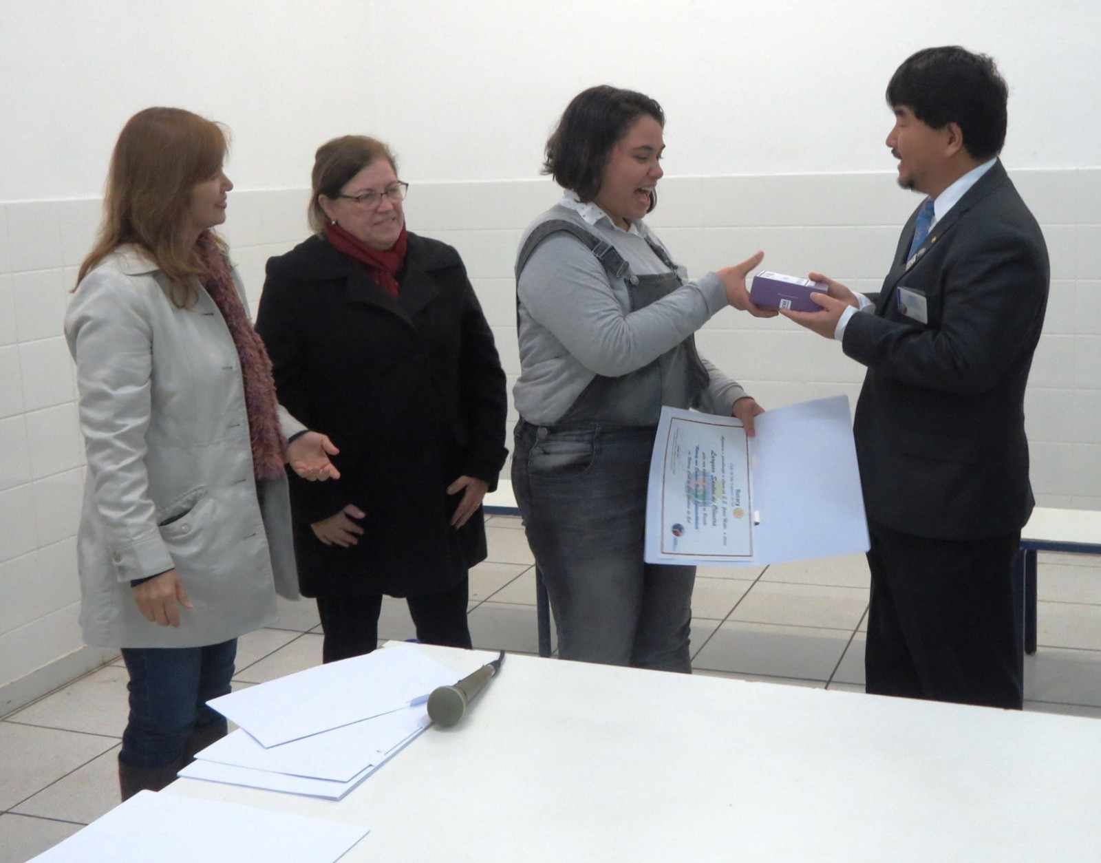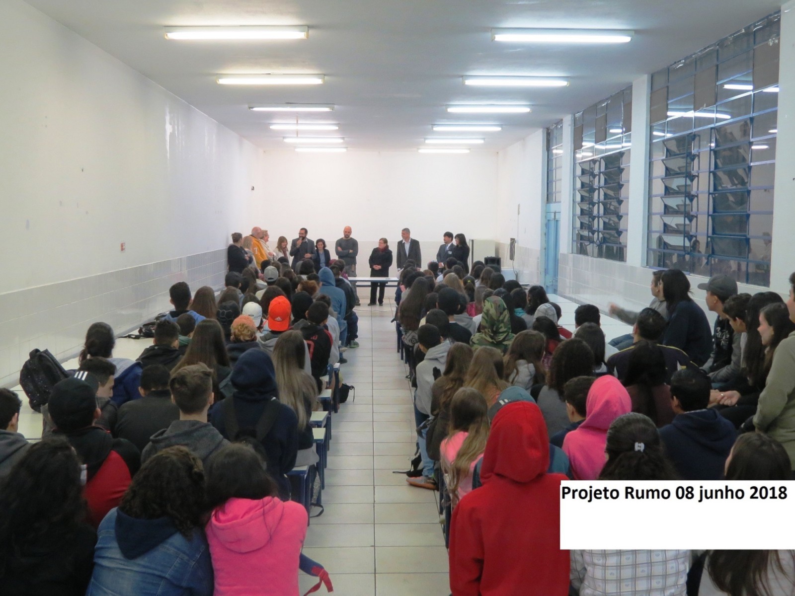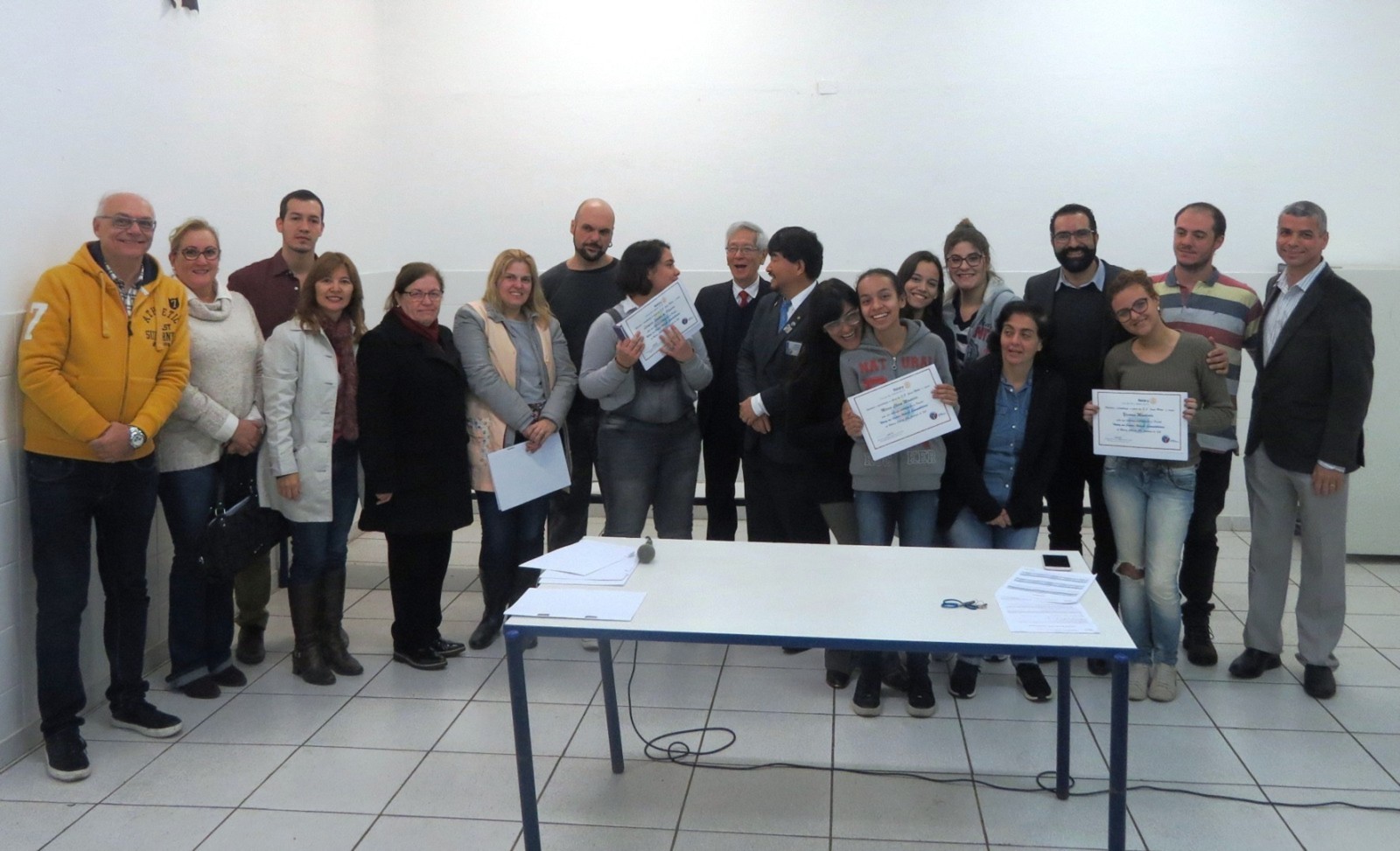Os Rotarianos do Rotary Club de São Caetano do Sul estiveram na manha do dia 08 de junho de 2018 nas dependências da Escola Estadual Joana Motta, realizando mais uma edição do Projeto RUMO, neste final de gestão que fez a diferença do presidente Jorge Ishi. Presentes mais de 90 alunos do 3º ano do Ensino Médio da E.E. Joana Motta que tiveram a oportunidade de assistirem as palestras sobre vários temas profissionais: Medicina, com o doutor Caio Kawamura; Medicina Veterinária, doutor Caio Telloli; Direito, doutor Carlos Tominaga; Psicologia, Patrícia Ishi e Tecnologia da Informação, Sr. Denilton Souza. Na oportunidade, o Presidente que Faz a Diferença, Jorge Ishi, acompanhado dos companheiros Patrícia, Rosa Maria, Mosavi, Vitório e Cabrino, homenagearam os diretores e professores da Escola Joana Motta, entregando-lhes um certificado de agradecimento pela participação no Projeto Rotary nas Escolas ? Redação Sustentabilidade. As alunas Yasmin Machado, Beatriz Nascimento, Thayná Bomfin e Maria Clara Monteiro, receberam um certificado de agradecimento pela participação no Projeto Rotary nas Escolas- Redação Sustentabilidade sendo que a aluna Laryssa Santos de Oliveira, além de também receber o certificado, foi contemplada com um tablet, por ter sido autora de uma das redações premiadas no Distrito. Em pronunciamento aos alunos, professores e rotarianos, o presidente Jorge Ishi destacou a importância da participação de jovens estudantes nos projetos de Rotary International, em especial no Rotary nas Escolas, onde alunos dessa Escola Estadual Joana Motta foram muito bem classificados e na participação das palestras do Projeto RUMO, cujo objetivo é ouvir de profissionais de importantes áreas de atuação e terem orientação para a escolha de suas formações profissionais.