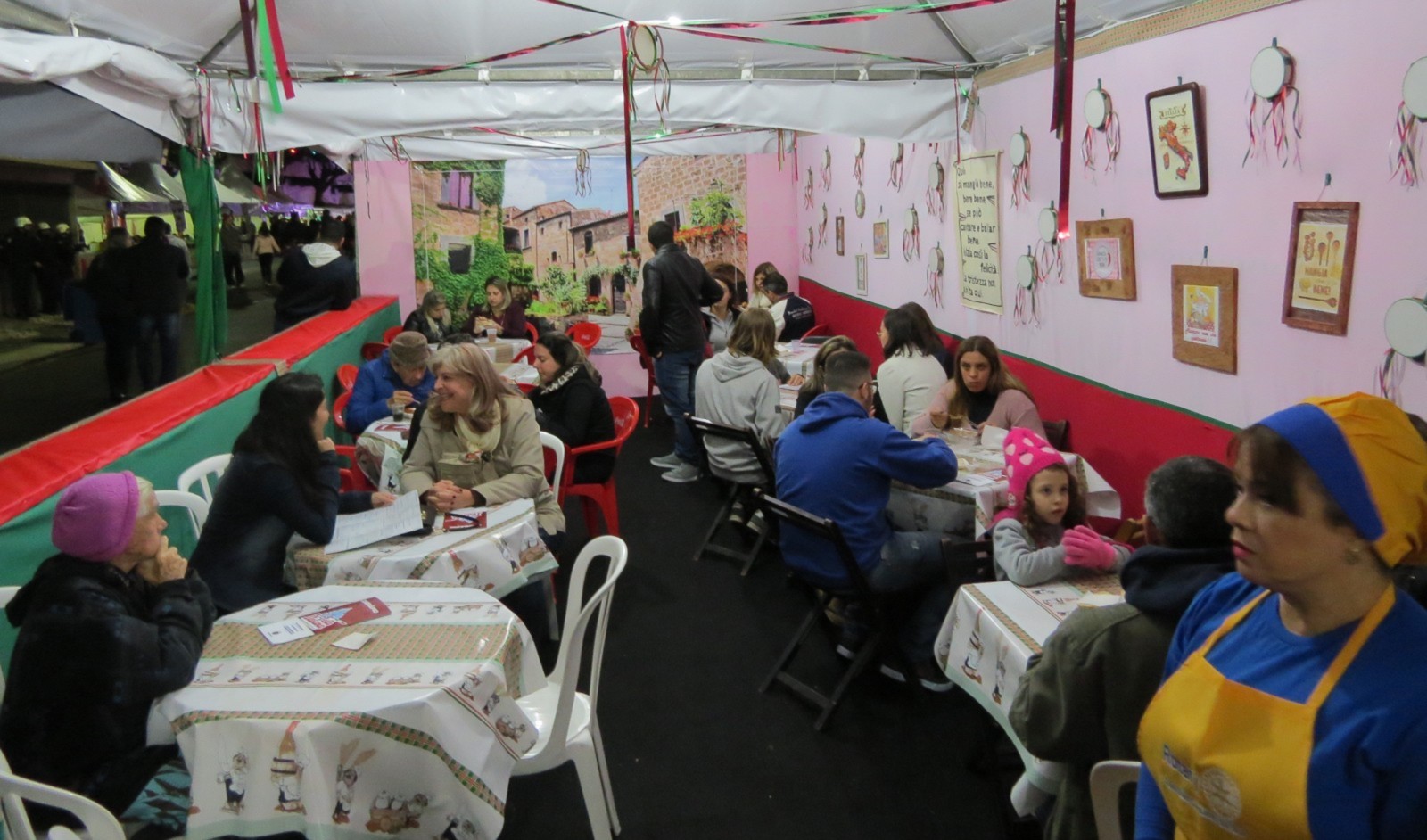 É uma festa alegre, familiar, com muita segurança ( Policia Militar e Gurda Civil Metropolina garantem a segurança ), onde crianças, jovens, casais , idosos.....tem para todo mundo, aproveitam do melhor da gastronomia italiana e assistem aos shows graciosamente.
