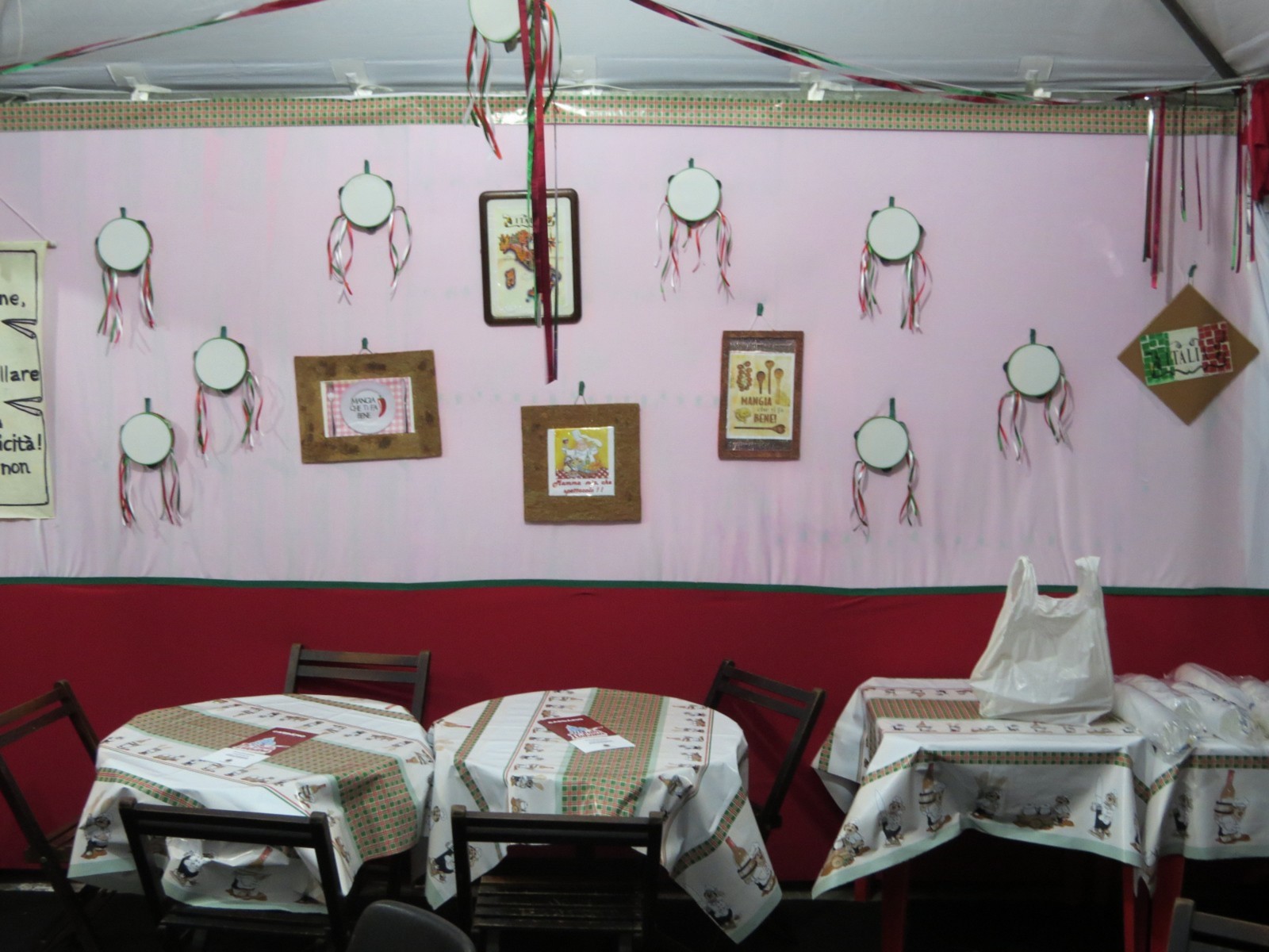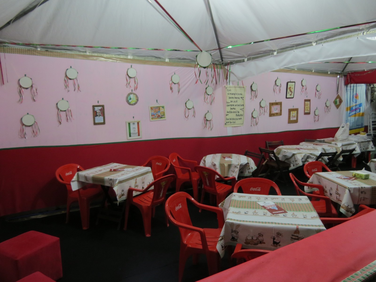 Excelentes pratos são servidos em nossa barraca: antepasto toscano, porção de calabresa acebolada, frango com polenta, massas ( spaghetti ou penne ) com bracciola ou polpetine, ao sugo, à amatriciana, lasanha ao forno, porção de polpetine, bebidas e doces, inclusive o autentico cannolo siciliano ( aquele, da Mooca, lá do Juventus, sabe meu... ).