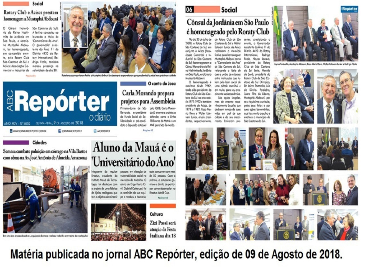 A homenagem prestada ao companheiro Mustaphá Abdouni , em reunião realizada na Associação Comercial de São Caetano do Sul, no último dia 30 de julho, foi destaque no jornal ABC REPÓRTER. , edição de 09 de agosto de 2018