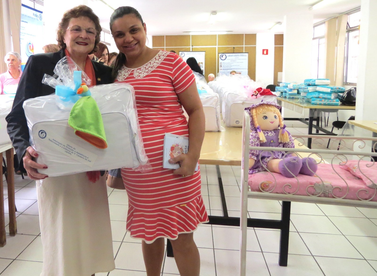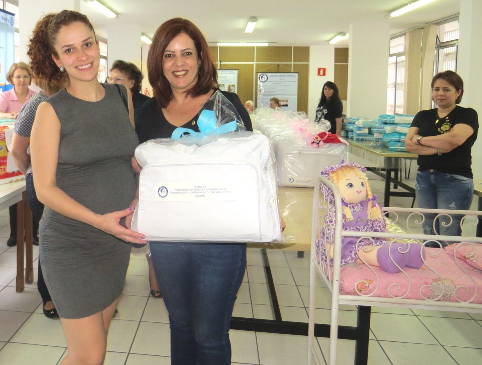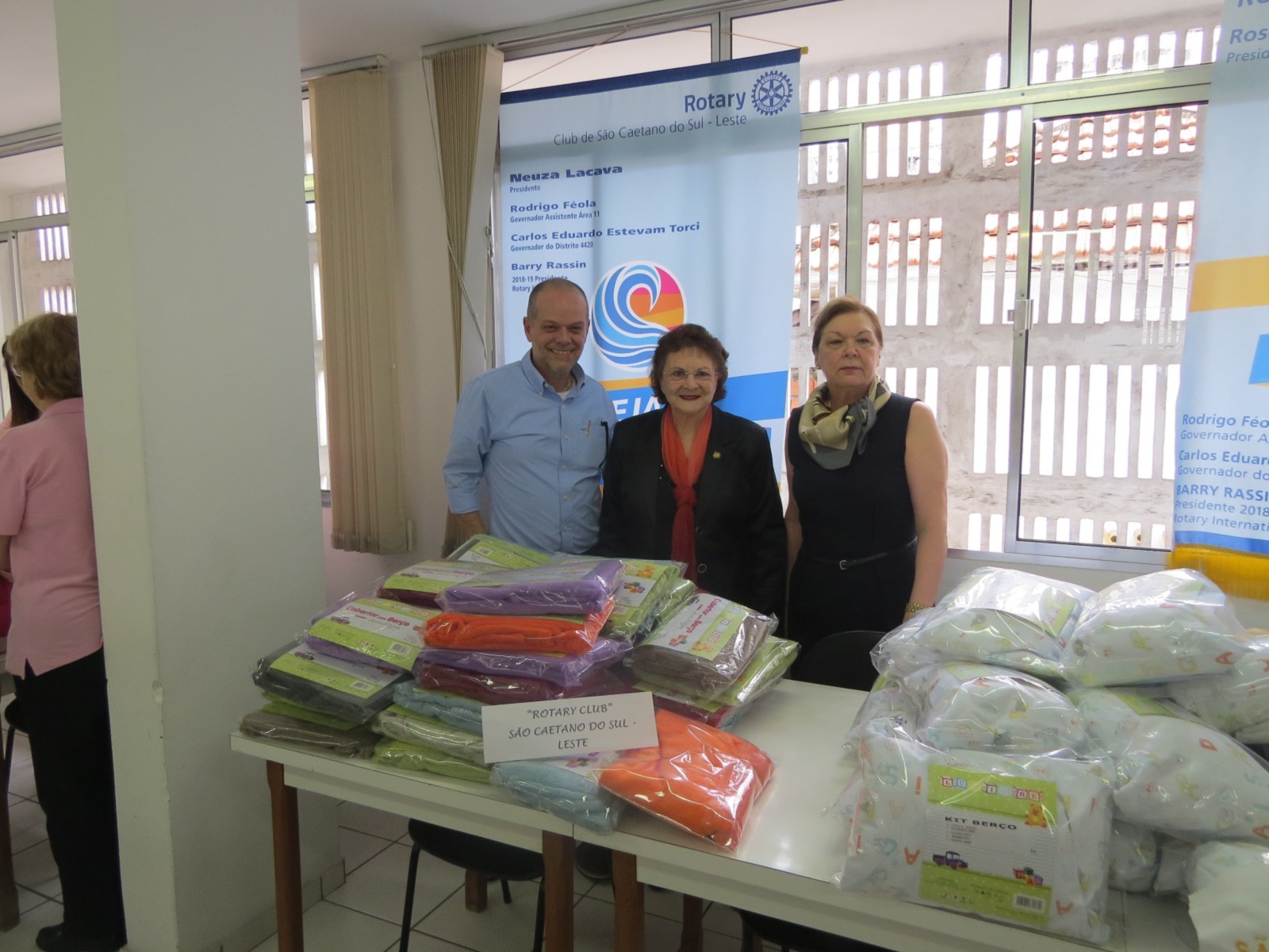Na tarde da quarta-feira, dia 03 de outubro de 2.018, na sede da APAMI (Associação de Proteção à Maternidade e à Infância), situada da rua Marechal Deodoro, nº 400, em São Caetano do Sul, o Rotary Club de São Caetano do Sul, presidido por Rosa Maria Riera e Rotary Club de São Caetano do Sul Leste, presidido por Neuza Toloi Lacava, juntamente com outras entidades assistenciais da cidade (Lions Clube, Rede Feminina de Combate ao Câncer, Fundo Social de Solidariedade e outras), estiveram participando da tradicional entrega de enxovais às futuras mamães, destinados aos futuros bebês.