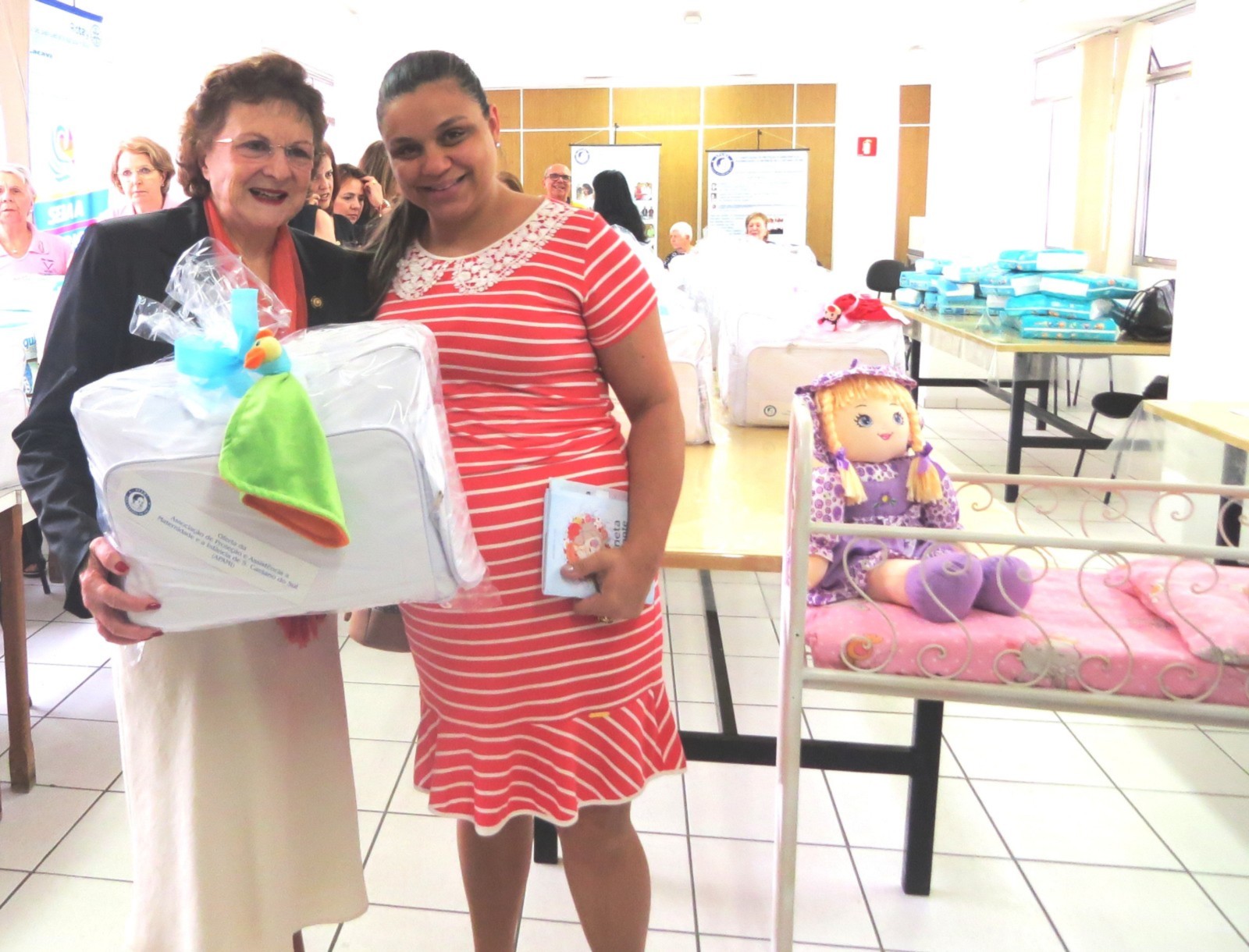 Mais de 30 futuras mamães receberam seus kits das mãos dos representantes das entidades colaboradoras bem como das voluntárias da APAMI e tiveram a oportunidade de agradecer essa valiosa colaboração.