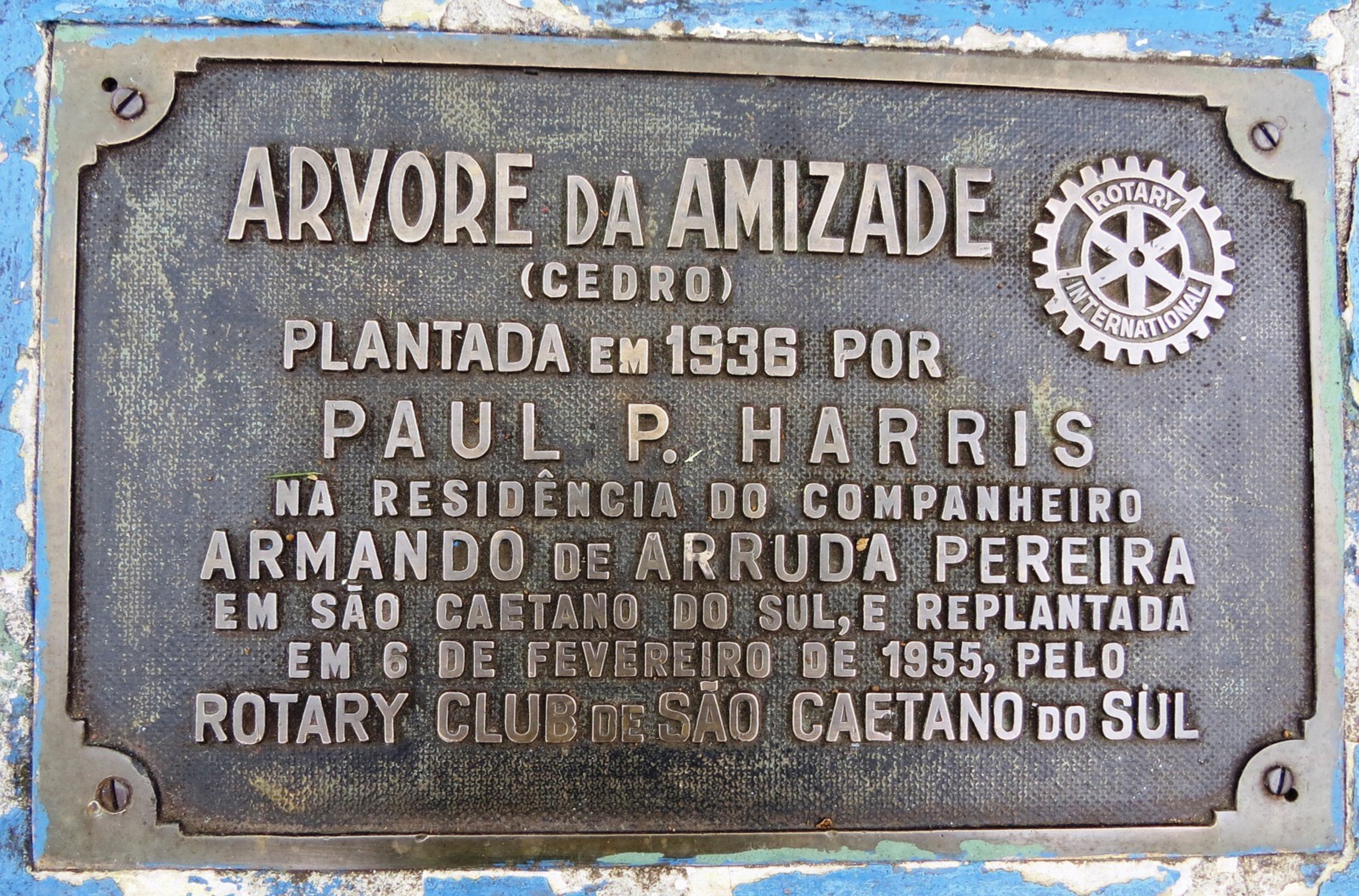 Torci, após regar a Árvore da Amizade com um regador plástico, num gesto de carinho, humildade e cuidado para esse valiosíssimo patrimônio histórico rotário, destacou perceber um sentimento diferenciado ao estar ao lado de algo que Paul Harris tocou e com muito cuidado destinou a árvore aos rotarianos e, à época, vaticinou Paul Harris: