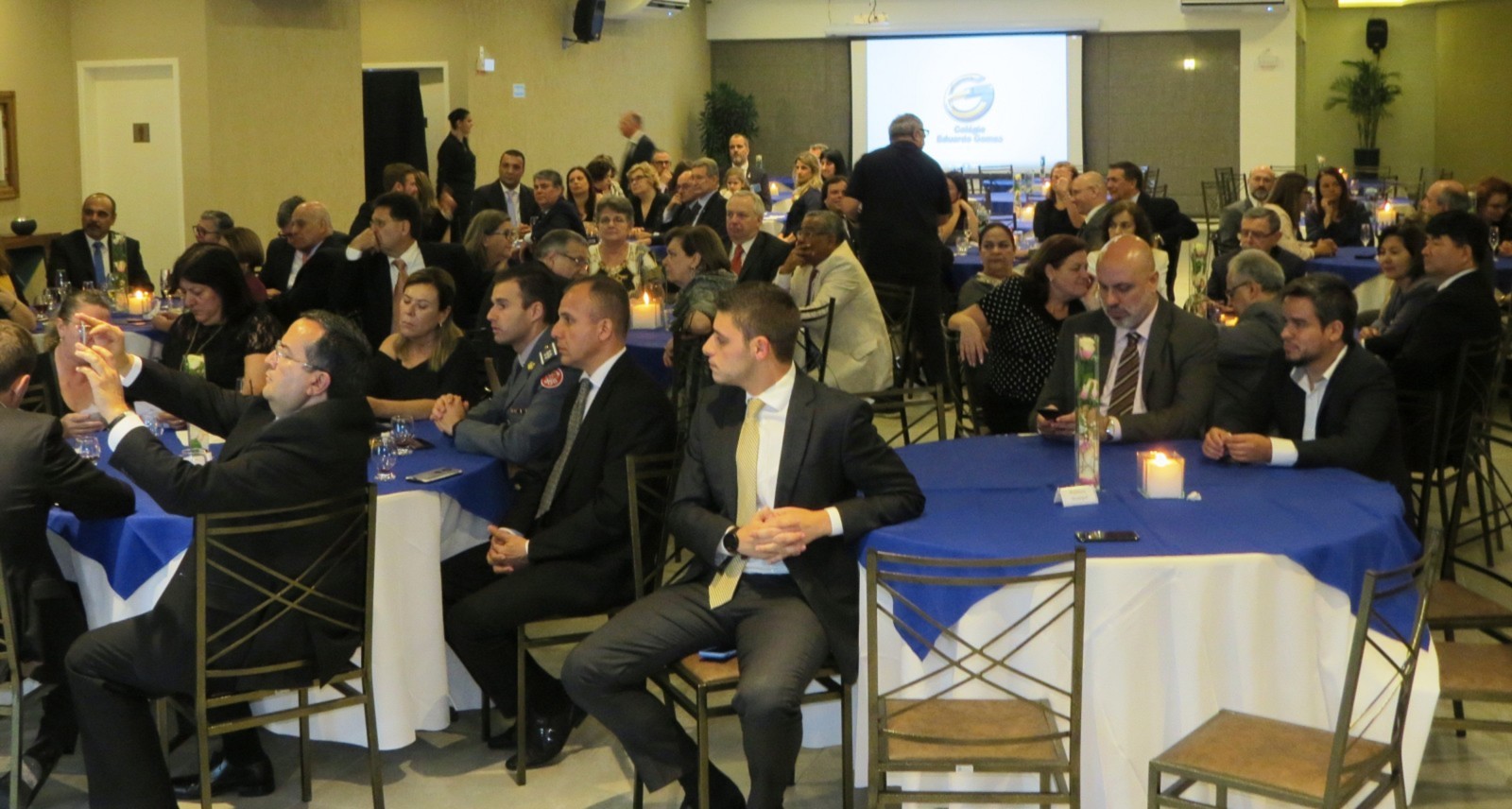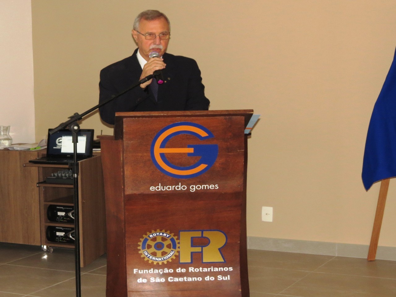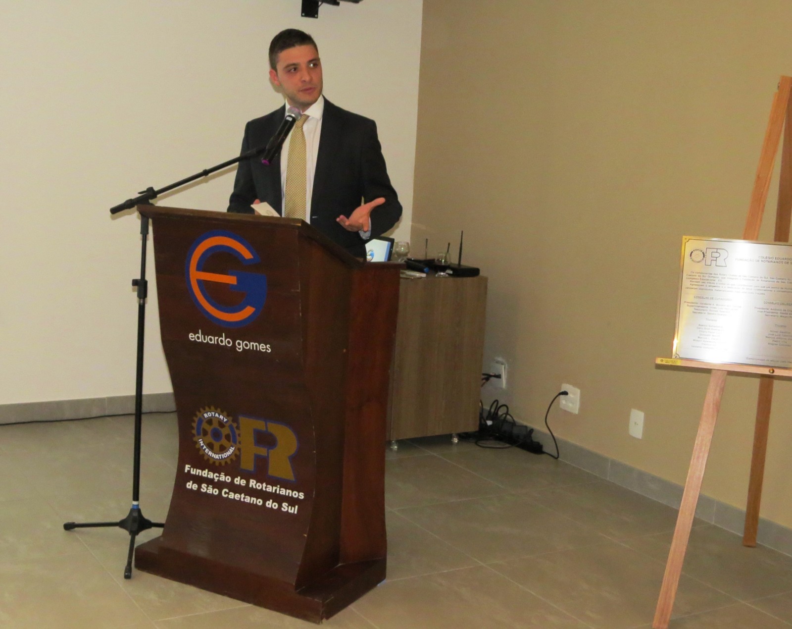 Na oportunidade, mais de 120 pessoas, entre rotarianos, autoridades e convidados, presentes ao evento, tiveram a oportunidade de conhecer a história do Colégio Eduardo Gomes, principal projeto na área educacional da Fundação de Rotarianos de São Caetano do Sul (entidade mantenedora do colégio e constituída pelos rotarianos dos 4 clubes de São Caetano do Sul) em depoimento do presidente da Fundação, Vanderlei Moreira dos Santos.