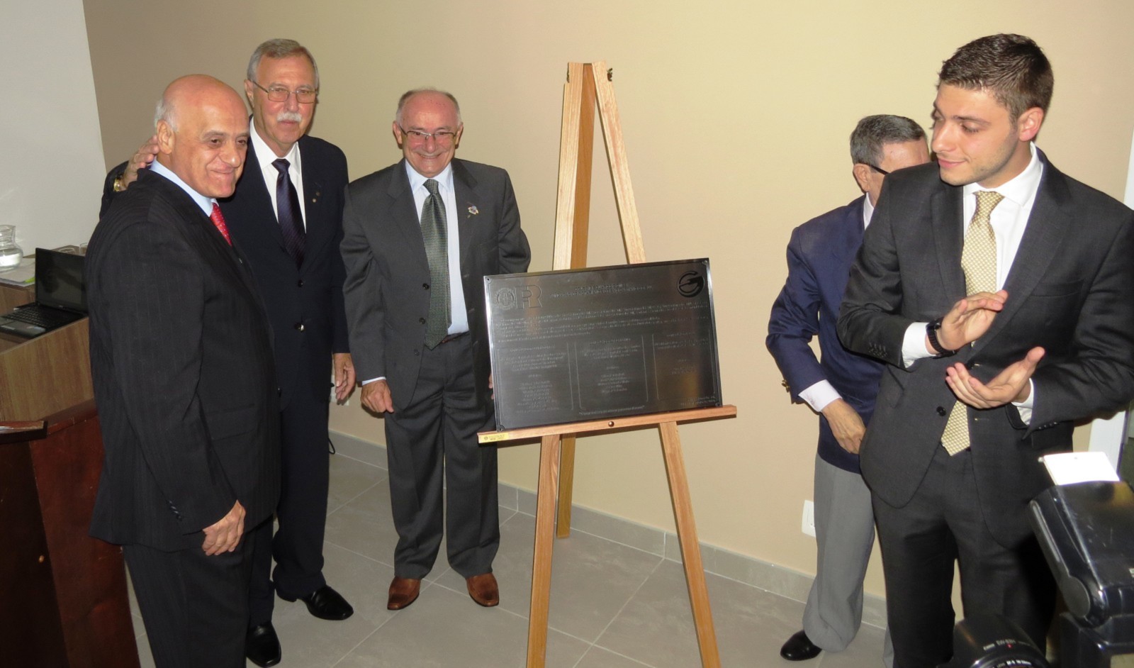 O presidente da Fundação de Rotarianos, Vanderlei Moreira dos Santos, acompanhado do presidente do Conselho Deliberativo, Amâncio da Cruz dos Santos, dos ex-presidentes, Juvenal Francisco Cianfarani e Charly Farid Cury, juntamente com o deputado Tiago Aurichio, descerraram a placa comemorativa confeccionada para registro do evento.