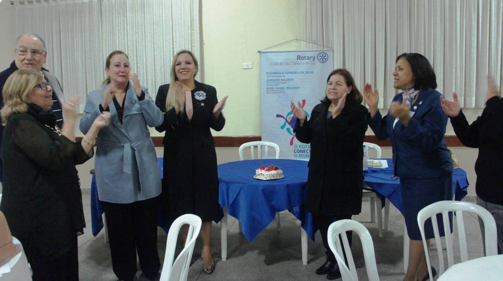 Em reunião realizada na noite do último dia 26 de agosto de 2019, o Rotary Club de São Caetano do Sul, presidido por Rosangela Ferreira Silva, foi anunciado o “Pai do Ano – 2019-2020”, o companheiro Vitório Dal’Mas Neto, sucedendo o “Pai do Ano 2018-2019”, Achilles Nunes. O anúncio foi feito pelos integrantes da comissão formada por Juvenal Cianfarani, Silvio Roberto Daidone e Mauro Russo, encarregados de escolher e indicar o homenageado. Em seu pronunciamento, Vitório agradeceu a indicação e escolha de seu nome para “Pai do Ano – 2019-2020”, destacando que seus filhos, apesar de hoje estarem morando há grande distancia, também moram em seu coração. Em seguida, foram homenageados os advogados do clube, Sonia Aparecida Delfino Alves, Vera Maria Almeida Lacerda, Mauro Russo e a própria presidente, Rosangela Ferreira da Silva. A companheira Vera Lacerda, fazendo uso da palavra, destacou a importância e o orgulho em ser advogada e Mauro Russo alegou que, depois da profissão de médico, o advogado é o que mais cuida das pessoas. Completando a série de eventos dessa reunião, tomaram posse mais dois novos associados: a professora Sonia Adorni e o tenente Ricardo Leal Nunes. Ao assumirem a condição de sócios do Rotary Club de São Caetano do Sul, Sonia e Ricardo fizeram a leitura do Termo de Compromisso e foram agraciados com o “pin rotário” pelas mãos dos futuros governadores do Distrito 4420 do Rotary International, Watson Uliana Travassos, Governador Eleito 2020-2021, do Rotary Club de Santos Ponta da Praia e Alaíde Vitorino, Governadora Indicada 2021-2022, do Rotary Club de São Paulo – Sudeste, que prestigiaram o evento com suas honrosas presenças. Após o jantar (à base de massas e deliciosos crepes salgados e doces), os rotarianos aniversariantes do mês sopraram as velinhas do bolo ao som do “parabéns a você” : Mosavi Ribeiro, Vera Lacerda, Silvio Daidone, Deisi Crepaldi e Rosa Riera. Registrada a presença do vereador Marcos Fontes.