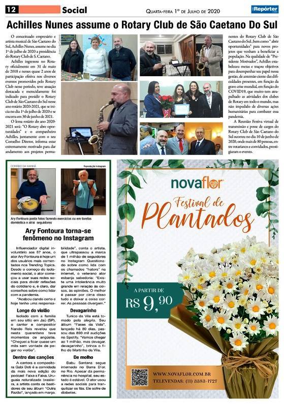O jornal ABC REPORTER, em sua edição de 01 de julho de 2020 publicou materia destacando a posse do presidente do Rotary Club de São Caetano do Sul, Achilles Nunes