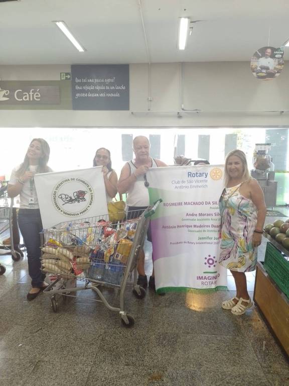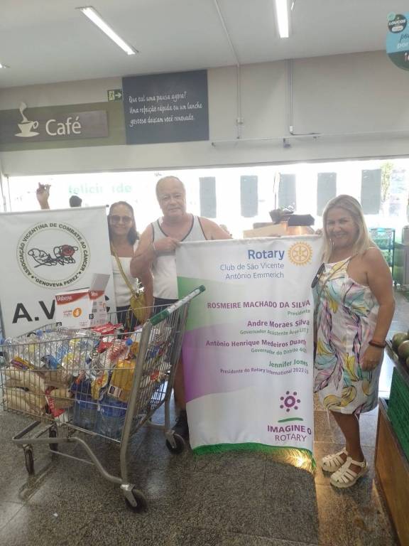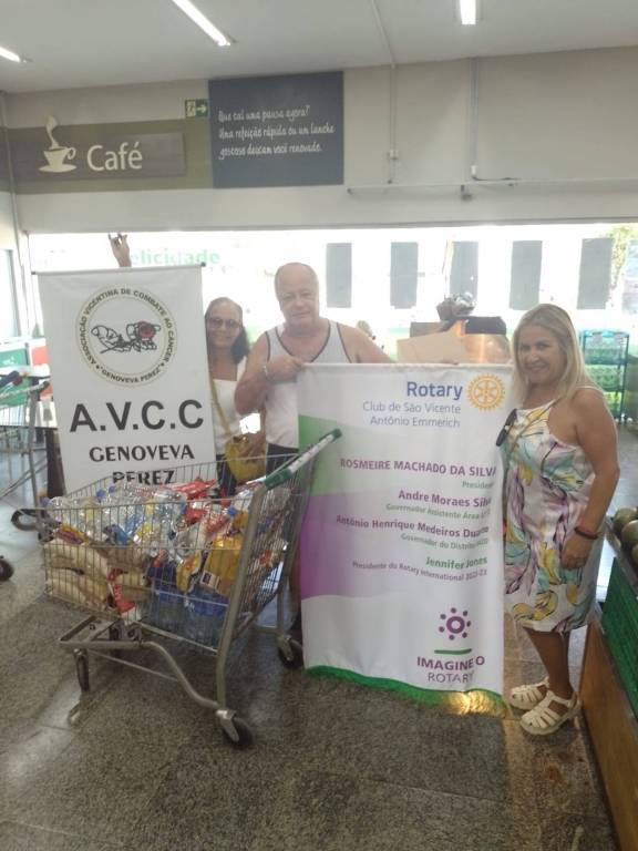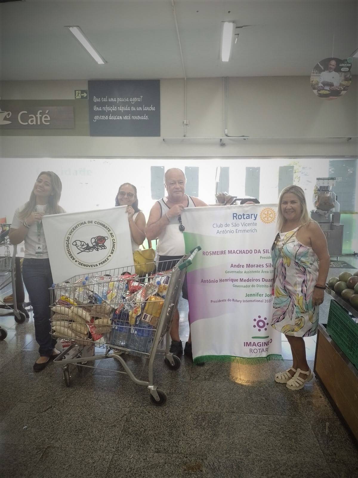 A presidente Meire junto com o companheiro Roberto fez a entrega de um carrinho de alimentos para a Associação Vicentina de Combate ao Cancer Genoveva Perez arrecadado junto ao parceiro Grupo Pão de Açucar Loja 205 de São Vicente e a representante da Associação a assistente social Priscila  juntamente com a voluntária Mary ficaram muiti felizes com o apoio. Na foto a representante do GPA, Thásila