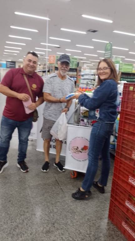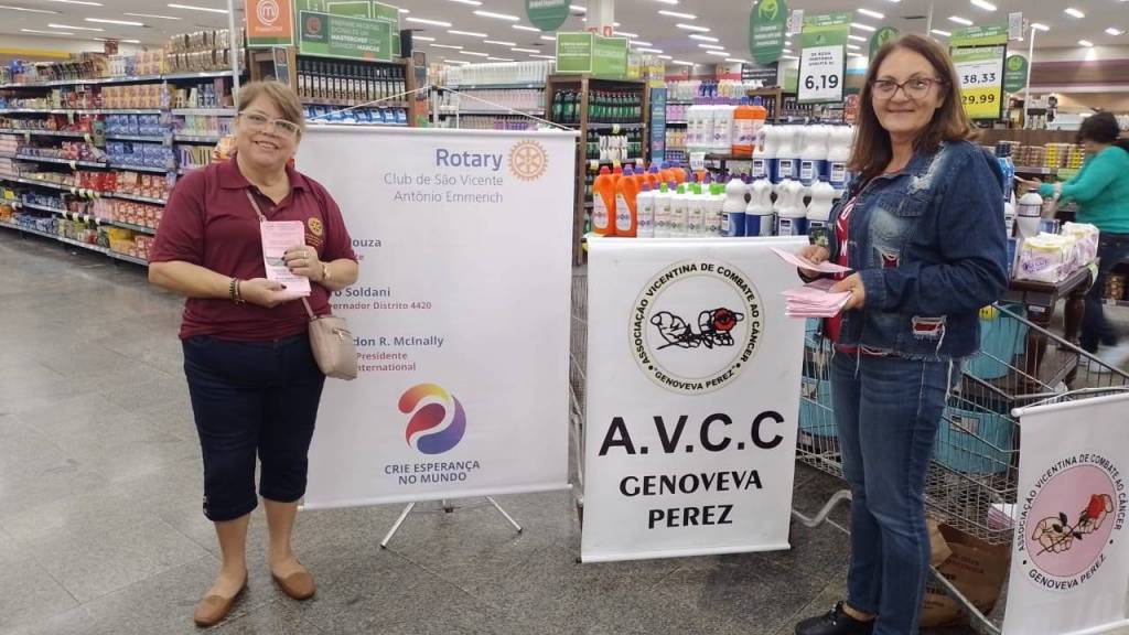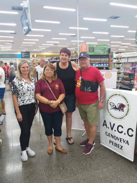 Realizamos,  em parceria com o grupo GPA,  mais uma atividade de coleta de alimentos para doação a entidade Associação Vicentina de Combate ao Cancer Genoveva Perez de São Vicente,  onde arrecadamos 158 Kg de alimentos que vão minorar  as dificuldades de muitas famíias assistidas na entidade. Foi entregue por nosssa presidente Ireni um chaveiro comemorativo dos 19 anos do clube ao gerente da loja do GPA.