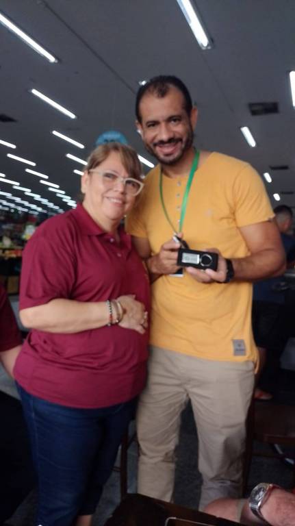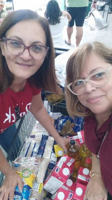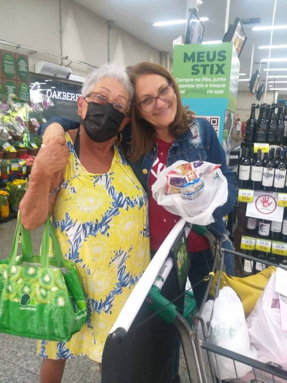 A companheira Presidente Ireni com duas voluntárias da entidade.