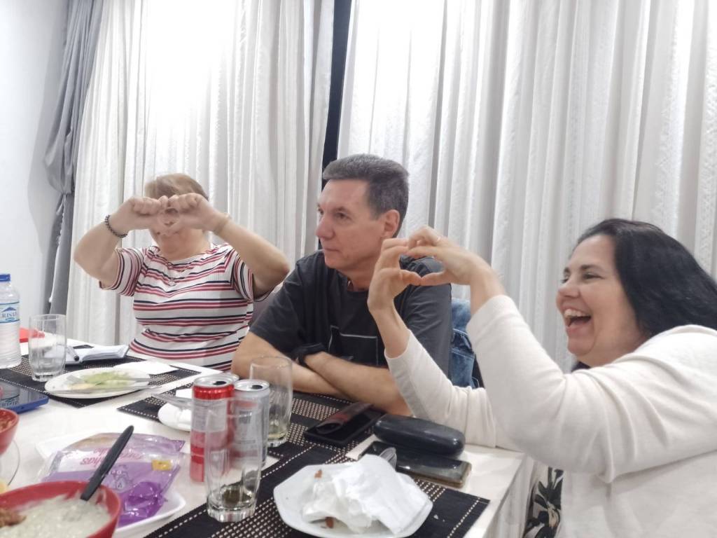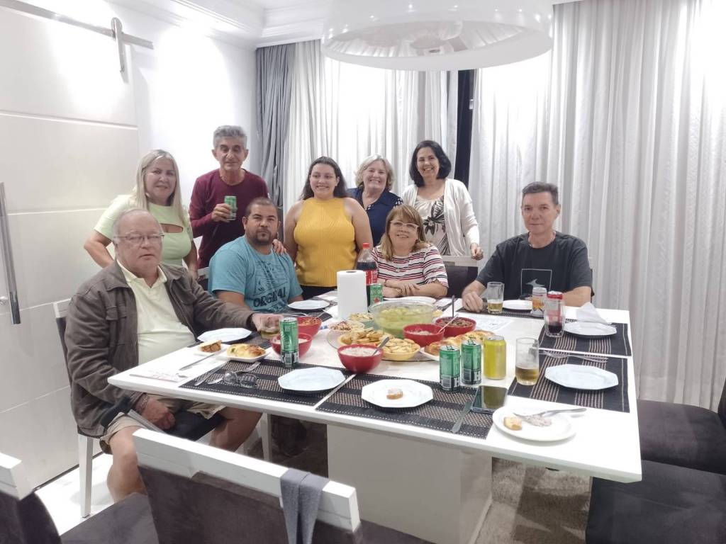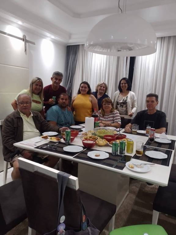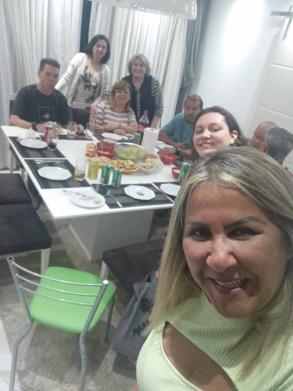 Reunião de companherismo animada na residencia da companheira Carmem coma presença de convidados.