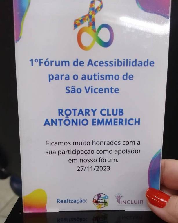 AA vice-presidente de nosso clube, companheira Meire nos representou no Forum de Acessibilidade para o autismo realizado na Camara Municipal de São Vicente recebendo um agradecimento por nosso envolvimento.