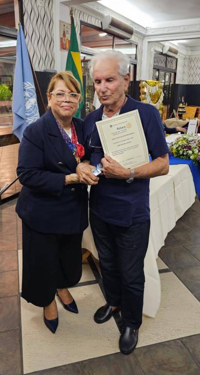 Muitos amigos e ex companheiros compareceram na Reunião Festiva em comemoração aos 20 anos de nosso clube e foi com muita alegria que recebemos todos em memorável foto onde estão muitos presidentes do clube e nossa homenagaead da noite presidente de nosso parceiro a Instituição Irmã Dolores na área continental de nossa cidade. Todos os presidentes receberam um certificado de agradecimento por seus serviços prestados e para culminar as homenagens fizemos a entrega de mais um TPH , desta vez ao presidente eleito 2024-25 Antonio Jose Moraes Monteiro. Tudo muito bom e uma agradável noite.