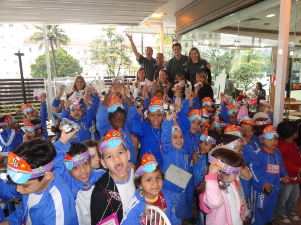 As atividades aconteceram em duas lojas da rede McDonalds em Santos-SP, e beneficiaram as crianças atendidas nos projetos do Dique da Vila Gilda e do Educação e Cidadania (Escola Maria Helena Roxo).