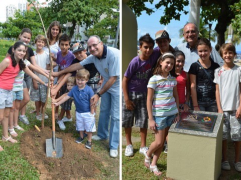 Um grupo de crianças do Rotary Club Santos-Praia, deu exemplo de cidadania no último dia 03 de março, ao plantar 23 mudas de árvores, sendo um ipê no jardim da praia e o restante no bairro do Campo Grande.
