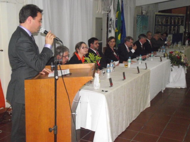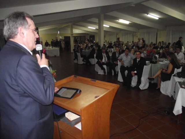 Ao fazer seu discurso, Leandro Bailon agradeceu todo apoio recebido pelos companheiros ao longo de sua gestão. Posso dizer que a gestão muito me valeu, por todo incentivo dado pelos companheiros e principalmente pelo apoio recebido da minha esposa Erika. Obrigada pela presença de todos, agradeceu o presidente Bailon.